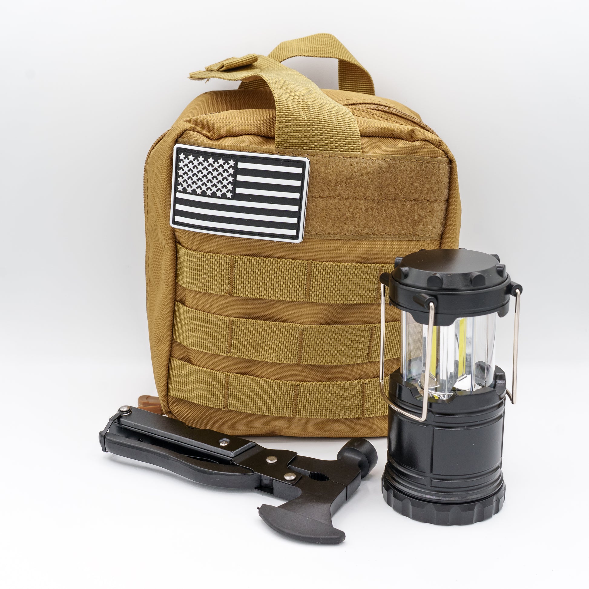 - Emergency survival tent (one-person foil mylar tent for heat retention)